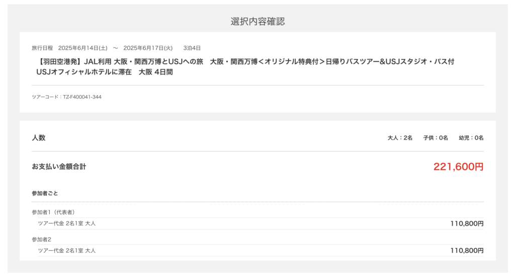 万博・USJをHISでツアー予約した場合の金額と旅行日程表
