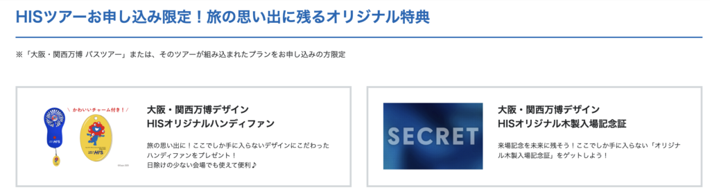 今回のHIS万博ツアーであれば、下記のような特典があります。